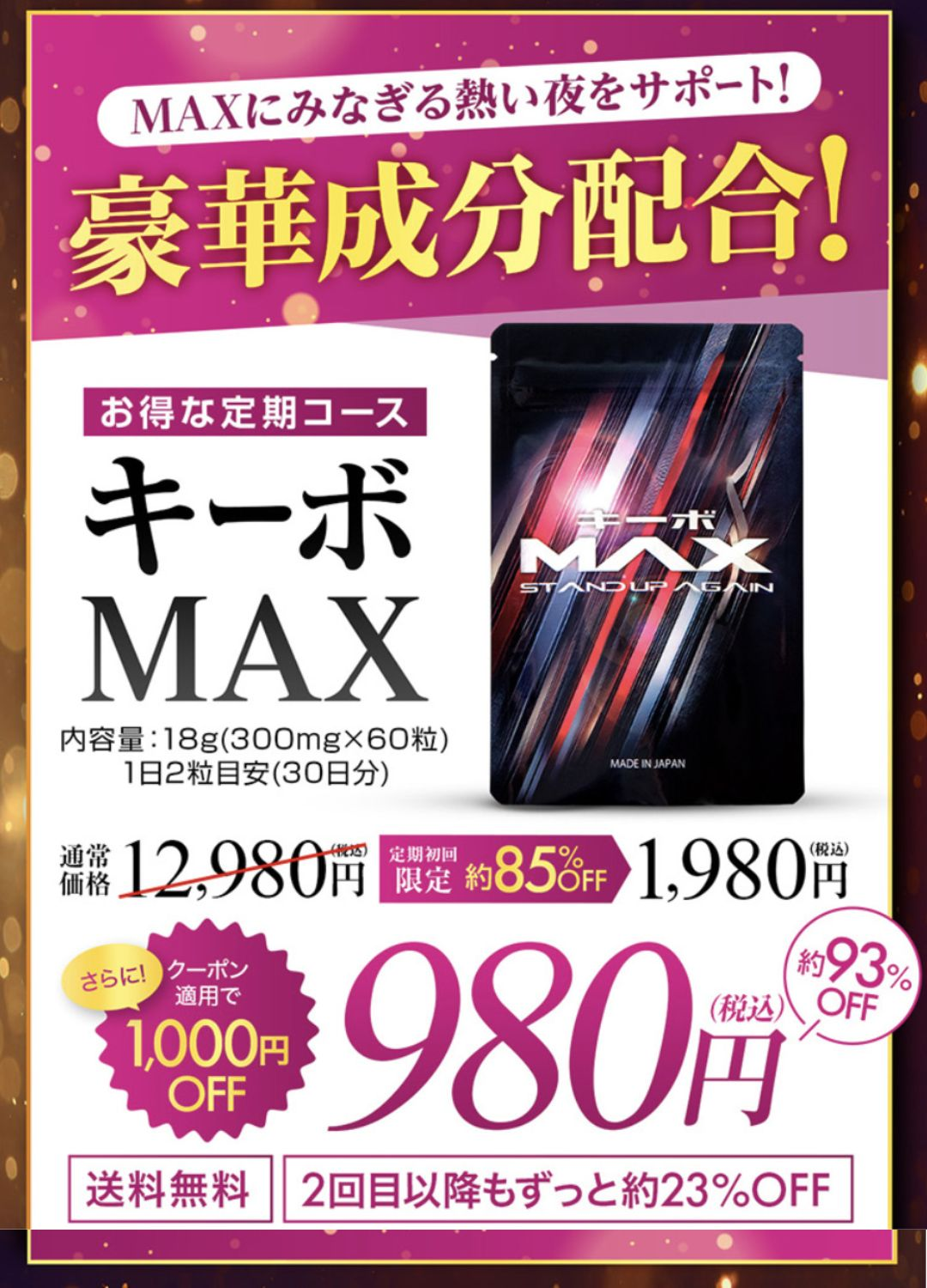 またキーボMAXには『強制絶倫成分』と呼ばれる「ムクナ」も独自製法で配合!